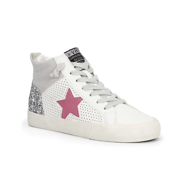 Women's Hi star with blue glitter and platinum heel tab