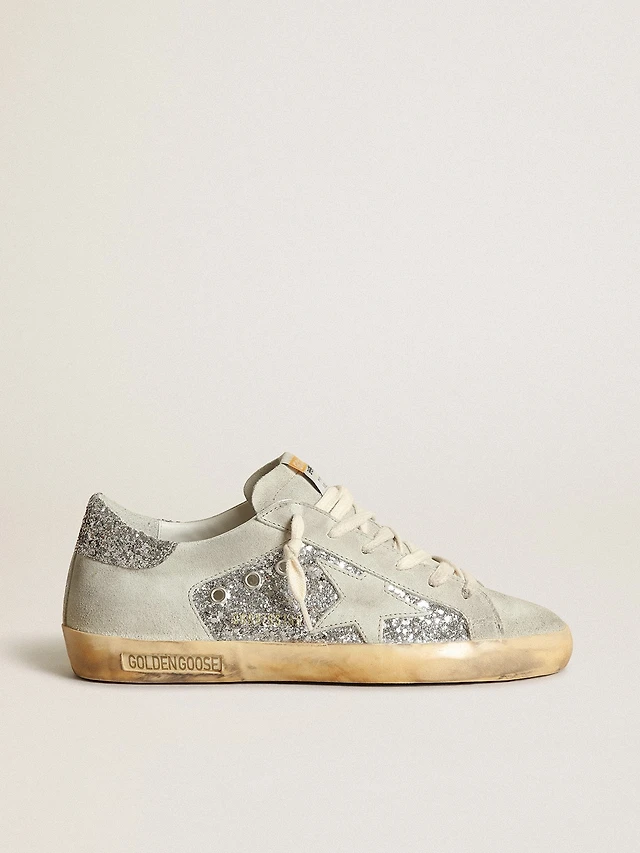 Women's Super-Star green suede, silver glitter star and leather heel tab
