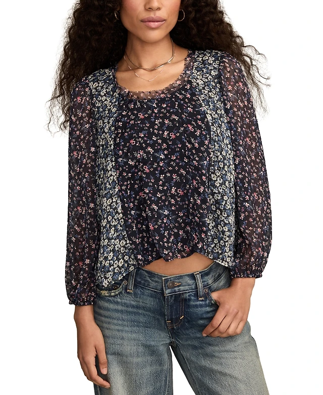 Semi-Sheer Short-Sleeve Top Floral Lace