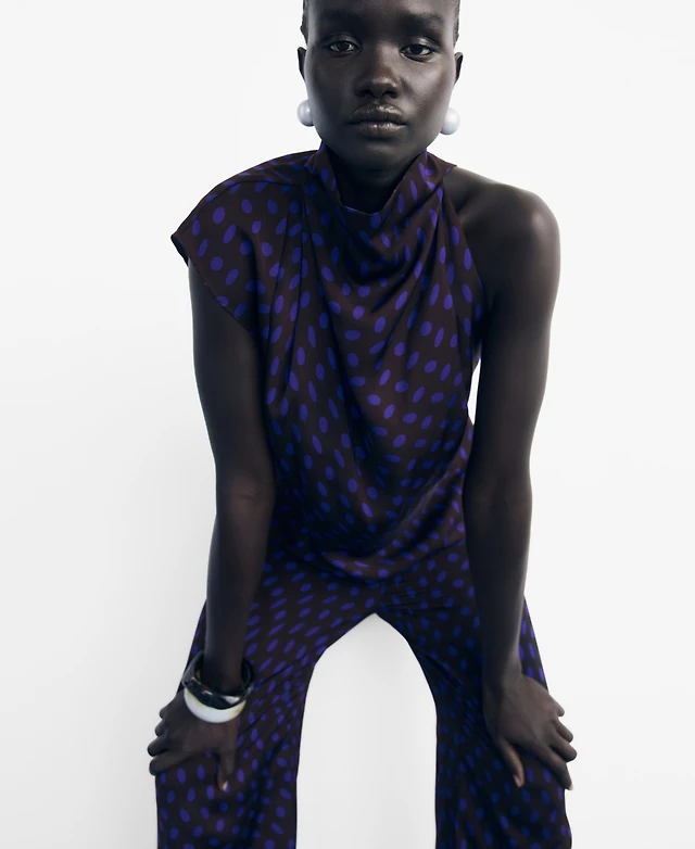 Mango Women's Draped Collar Polka-Dot Blouse