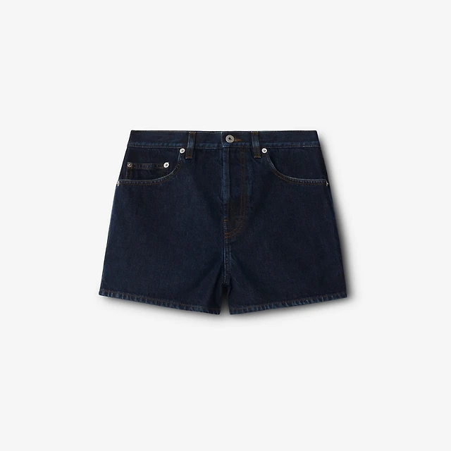 Belted Check Denim Shorts in Indigo - Women, Cotton | Burberry® Official