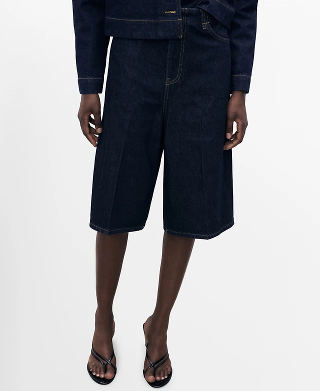 High Waisted Relaxed Long Shorts Cotton-Blend