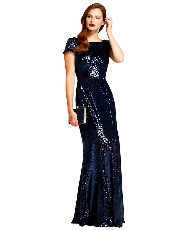 Long Sleeve High Neck Sequin Detail Ruffle Gown