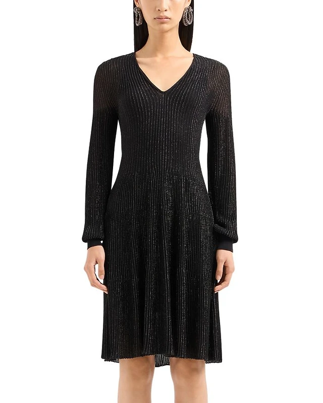 Dkny Women's Long Sleeve Surplice Metallic Dress