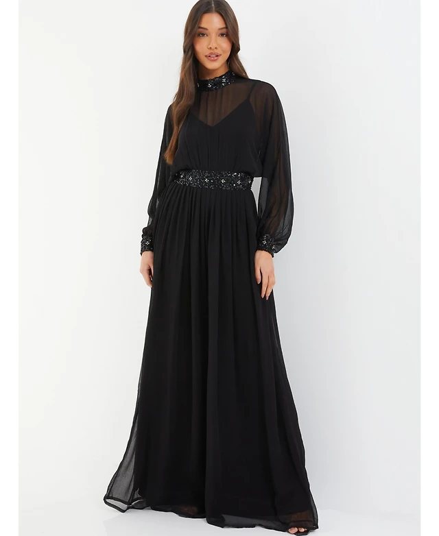 Alex & Sophia Women's Sequin Long Sleeve Dress