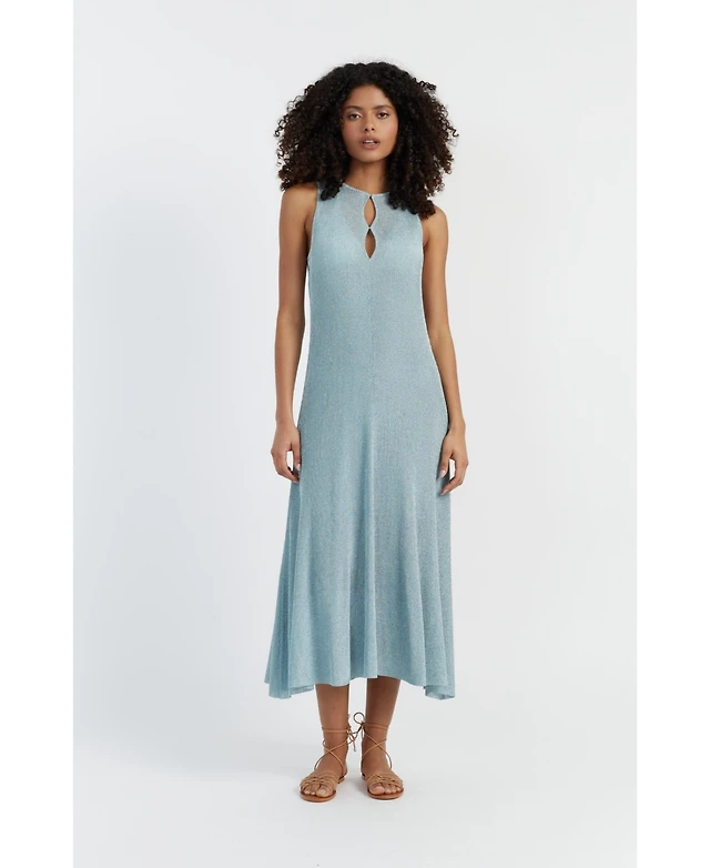 kensie Women's Drape-Neck Sleeveless Metallic Dress