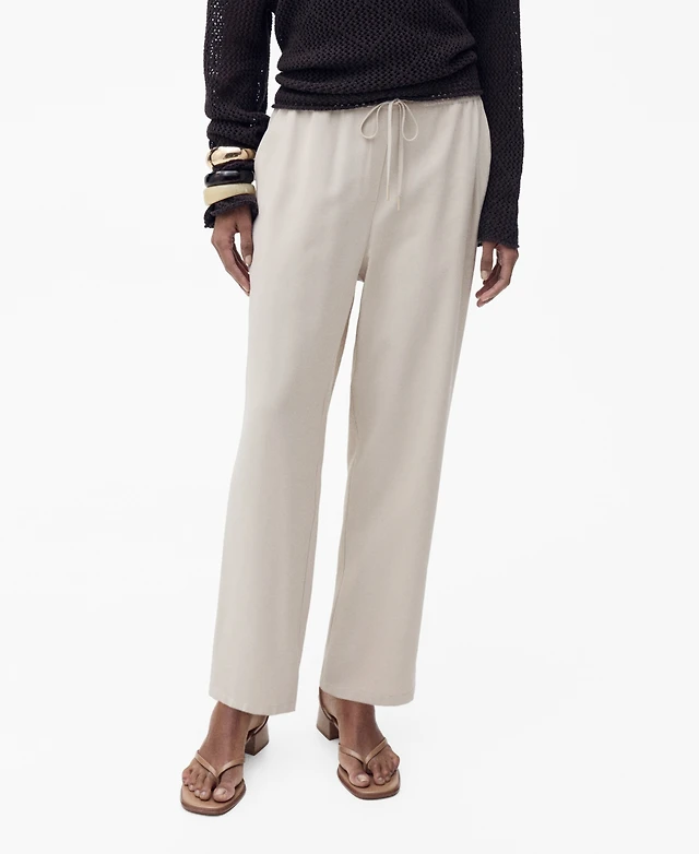 Mango Women's Elastic Waist Flowy Trouser Pants