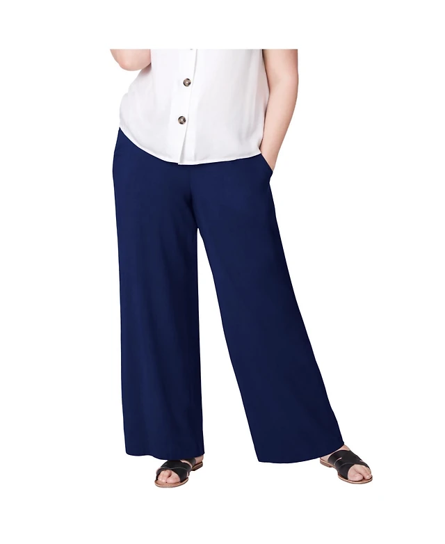 ellos Women's Wide-Leg Soft Pants With Back Elastic
