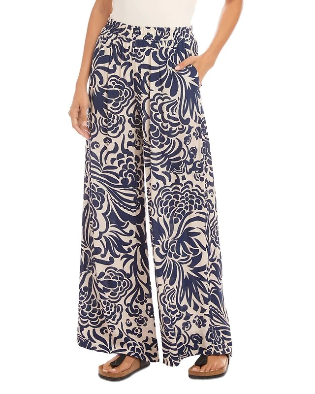 Dkny Womens Printed Puff Sleeve Ruched Top Glazed High Rise Seamed Cuff Wide Leg Pants
