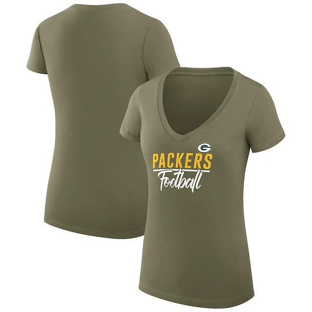 Women's G-III 4Her by Carl Banks Green Green Bay Packers V-Neck Fitted T-Shirt