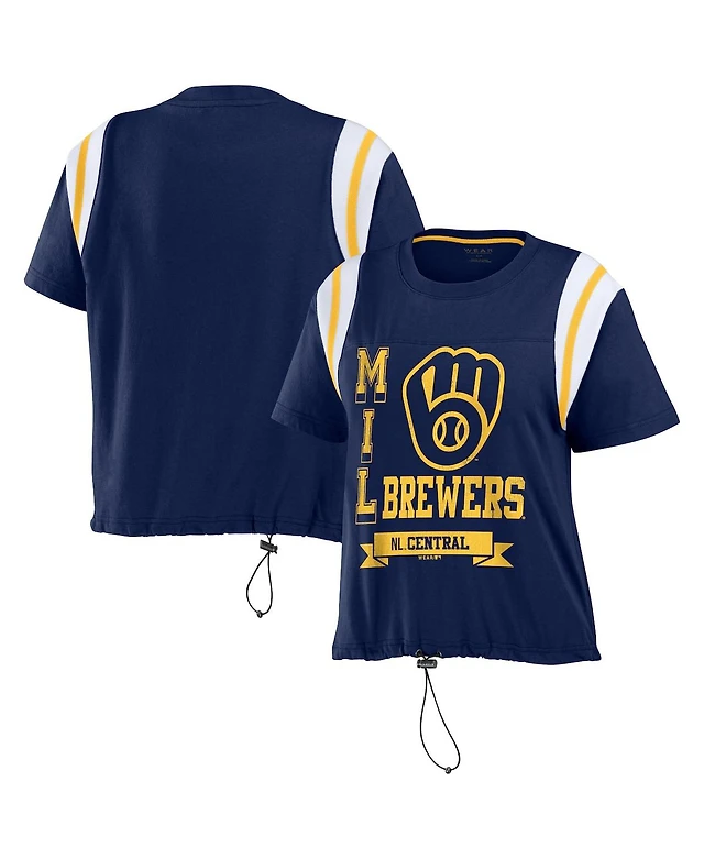 Women's Wear by Erin Andrews Navy Distressed Milwaukee Brewers Cinched Colorblock T-shirt