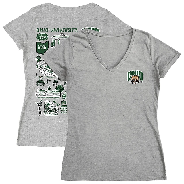 Women's Vive La Fete Gray Oregon Ducks Impressions Artwork V-Neck Fitted T-Shirt