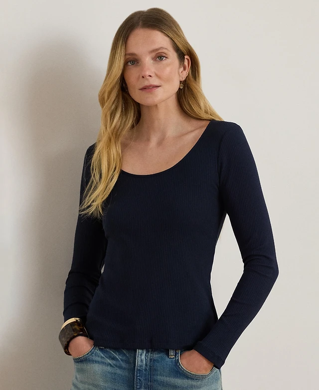 Polo Ralph Lauren Women's Shrunken-Fit Jersey Long-Sleeve Tee