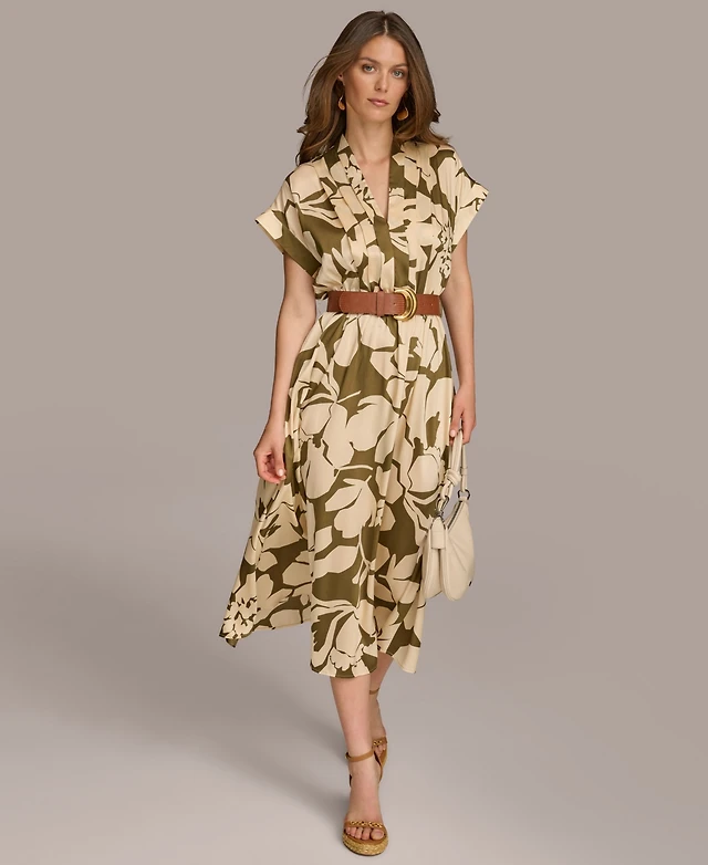 Donna Karan New York Women's Belted Knee-length V-neck Jacket Dress