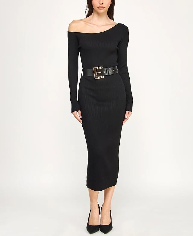 Eliza J Plus Eyelet Off-The-Shoulder Belted Midi Dress