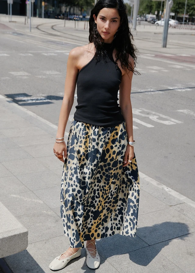 DEB Multi-Panel Asymmetric Midi Skirt Stretch Cotton Blend