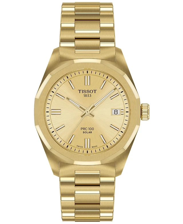 Tissot Women's Swiss Prc 100 Solar Gold-Tone Stainless Steel Bracelet Watch 34mm