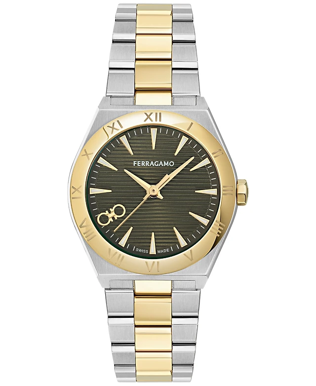 Gevril Women's Bari Tortoise Swiss Quartz Two-Tone Stainless Steel Bracelet Watch 34mm