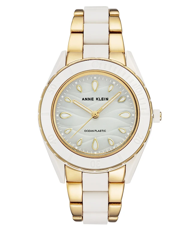 Anne Klein Women's Gold-Tone and White Solar Ocean Work Plastic Bracelet Watch, 38.5mm