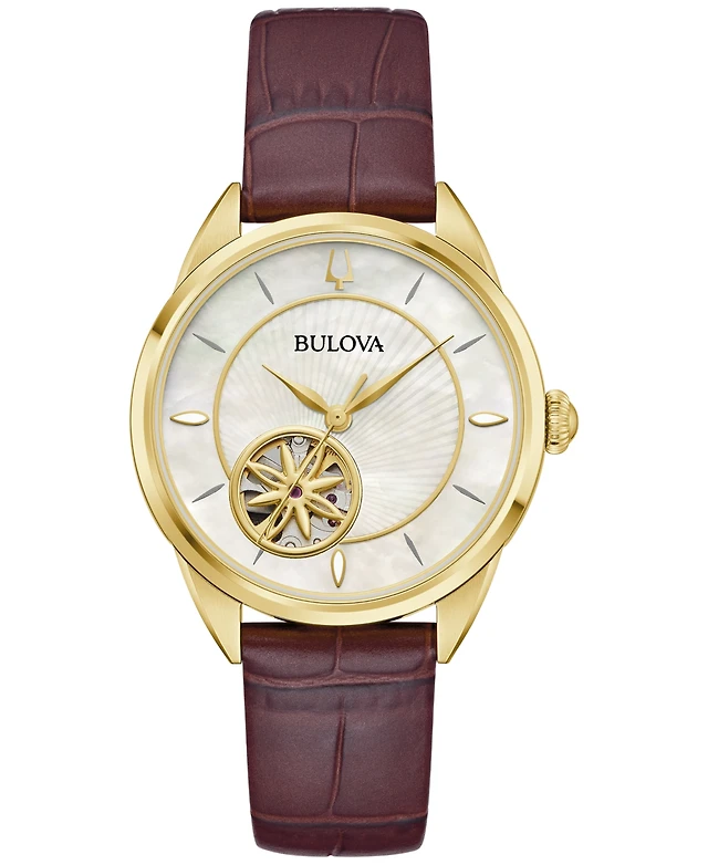 Caravelle Designed by Bulova Women's Brown Leather Strap Watch 21x33mm
