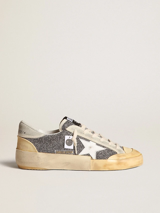 Women's Super-Star with gold glitter star and ice-gray suede inserts
