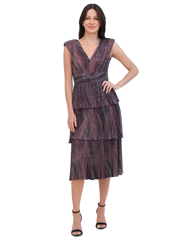 julia jordan Women's Sleeveless Tie-Shoulder-Strap Tiered Maxi Dress