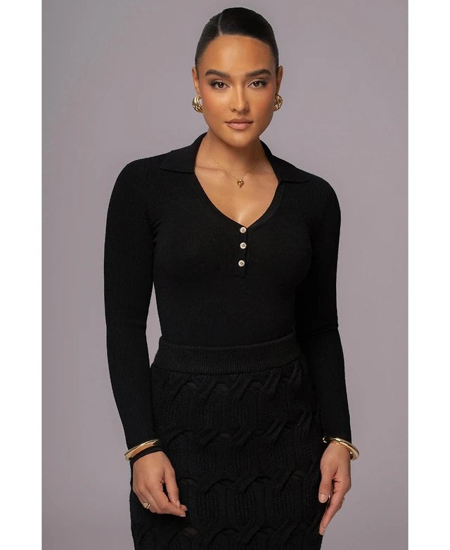 CeCe Women's Rhinestone Embellished Long Sleeve Collared Top