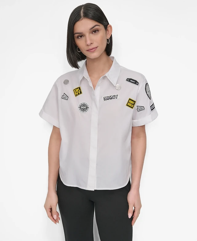 Anne Klein Women's Satin-Collar Studded-Cuff Top