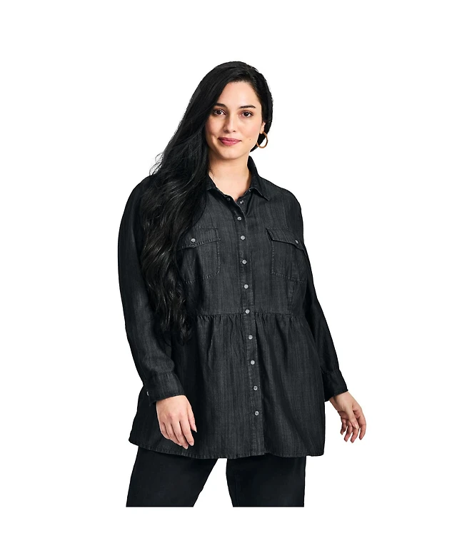 Democracy Women's Ruffle-Trim-Collar Button-Front Top