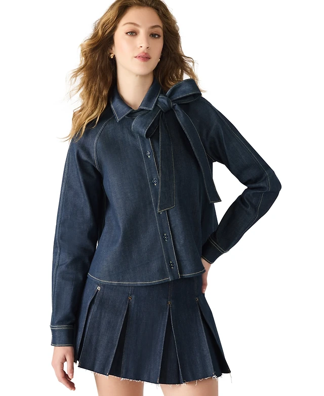 Ellen Tracy Women's Button-Up Shirt with Denim Trim