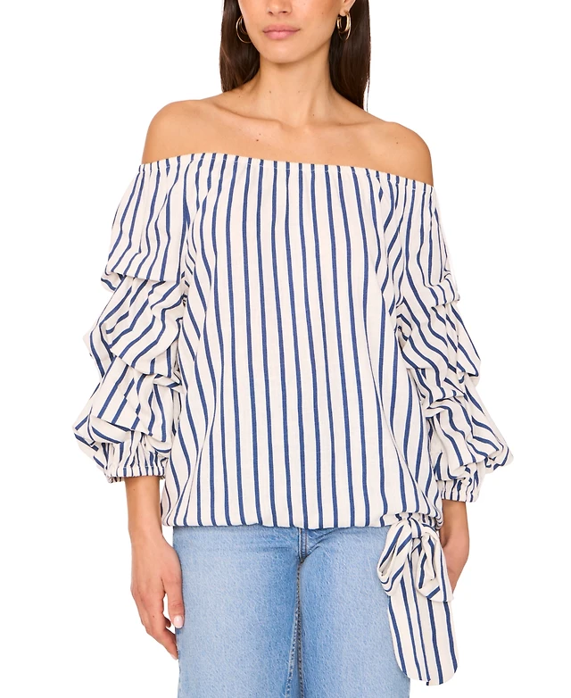 Vince Camuto Women's Off The Shoulder Bubble Sleeve Tie Front Blouse