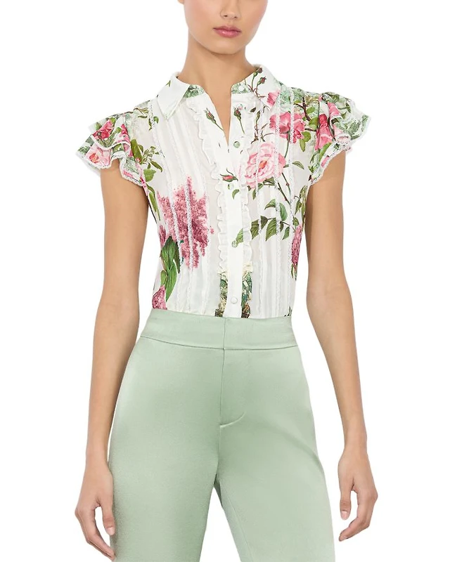 Lauren Ralph Lauren Womens Floral Ruffle Trim Georgette Blouse P Xs 3x