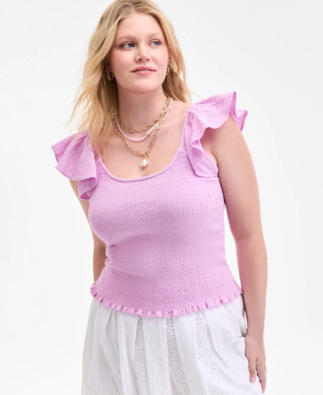 Style & Co Women's Printed Cotton Square-Neck Top, Exclusively at Macy's