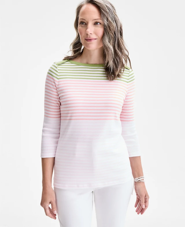 Style & Co Petite Floral Print Pima Cotton 3/4-Sleeve Top, Exclusively at Macy's