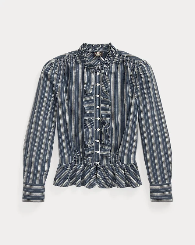 Liverpool Los Angeles Women's Striped Embroidered Cotton Linen Blouse