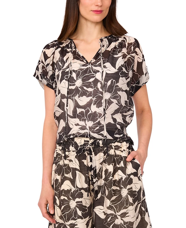 Vince Camuto Women's Floral Jacquard Crewneck Blouse