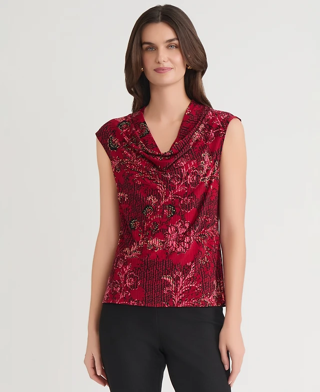 Calvin Klein Women's Printed Mock-Neck Sleeveless Blouse