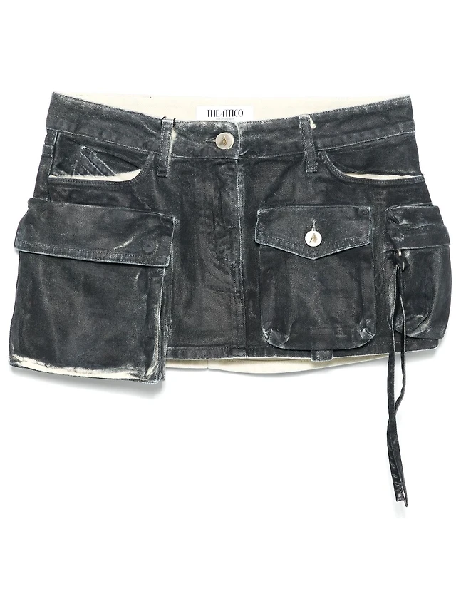 Avec Les Filles Women's Bubble-Hem Denim Mini Skirt