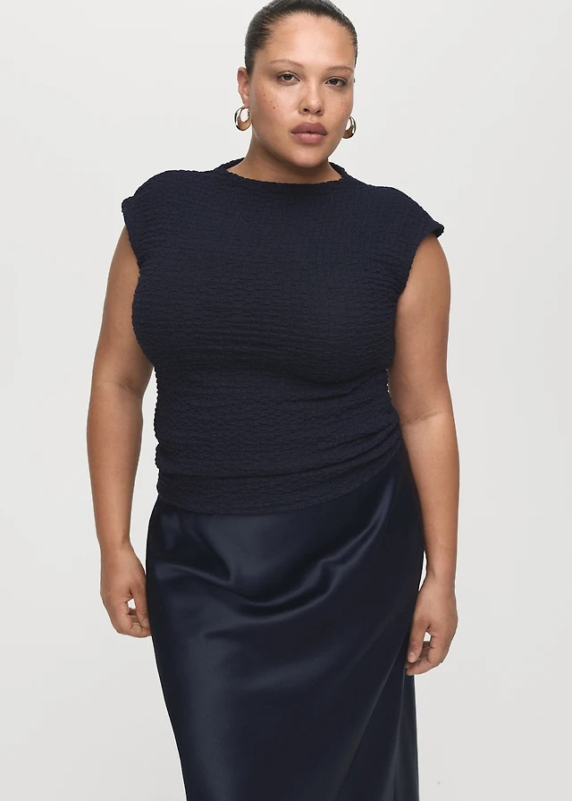 Crinkle-plissé skirt with tonal waistband