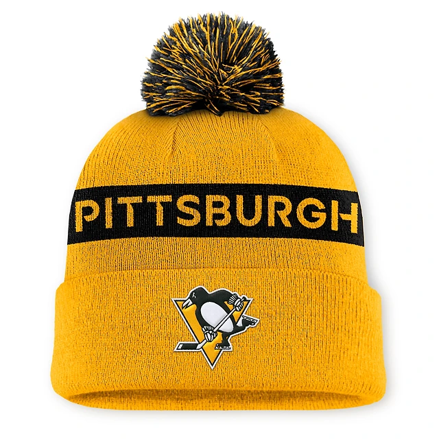 Women's Fanatics Gold/Black Pittsburgh Penguins Authentic Pro Rink Cuffed Knit Hat with Pom