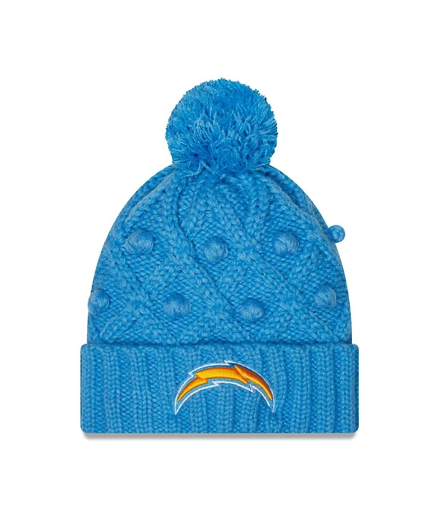 Women's New Era Powder Blue Los Angeles Chargers Snowy Cuffed Knit Hat with Pom