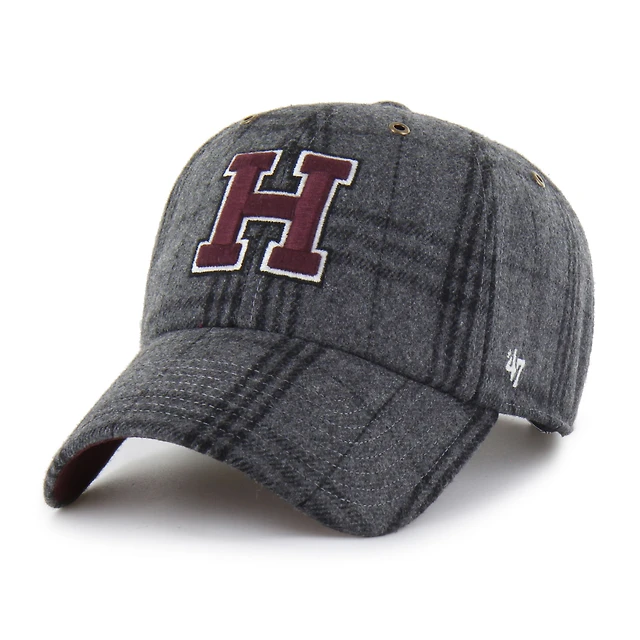 Unisex '47 Gray Harvard Crimson Plaid Windowpane Clean Up Adjustable Hat