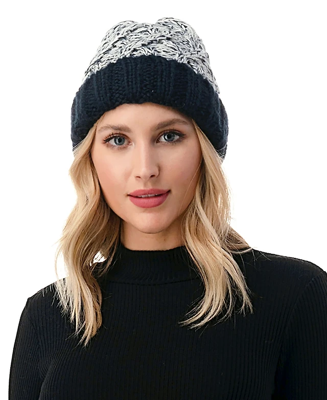 Marcus Adler Women's Cable Knit Pom Beanie with Cuff