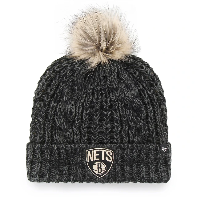 Women's '47 Black Brooklyn Nets Meeko Cuffed Knit Hat with Pom