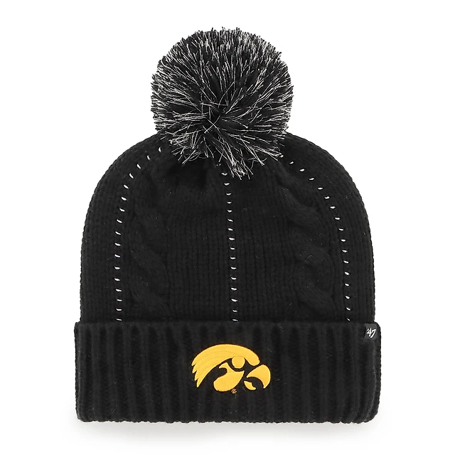 Women's '47 Black Iowa Hawkeyes Bauble Cuffed Knit Hat with Pom