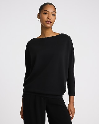 Open Stitch Double V-Neck Dolman Sleeve Sweater