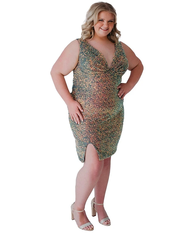 Celebrations by Sydney's Closet Fitted Sequin Plus Gunmetal Silver Party Dress