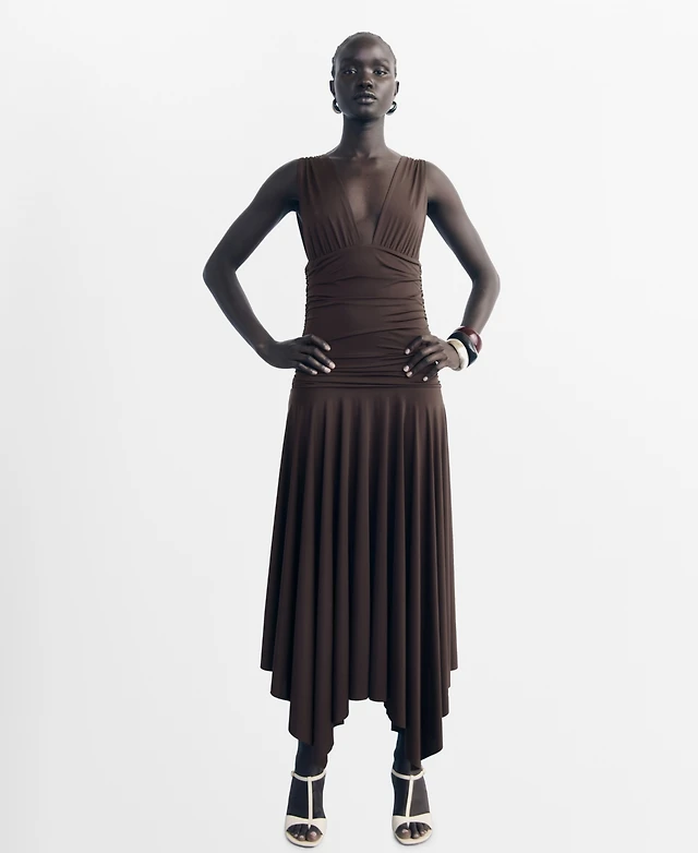 Dress the Population Women's Britt V-Neck Ruched Sleeveless Dress