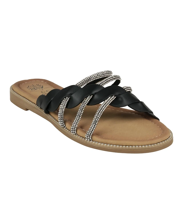Gc Shoes Women's Jolie Strappy Embellished Slip On Flat Sandals