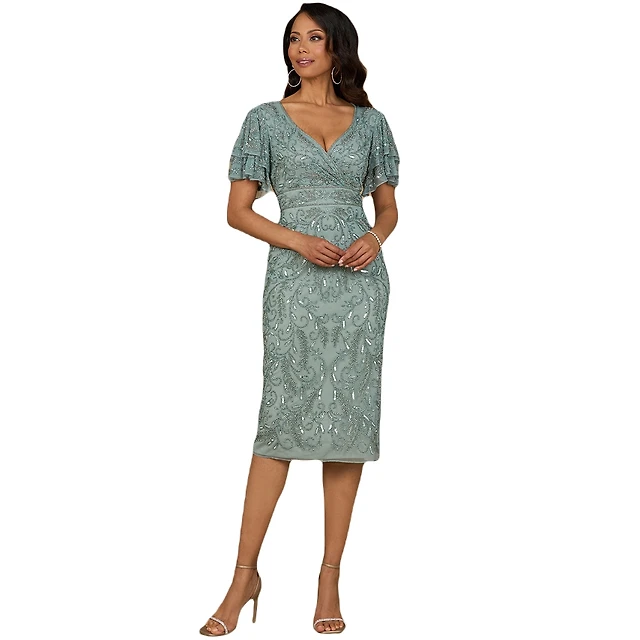 Mac Duggal Women's Beaded Cap Sleeve Column Midi Dress